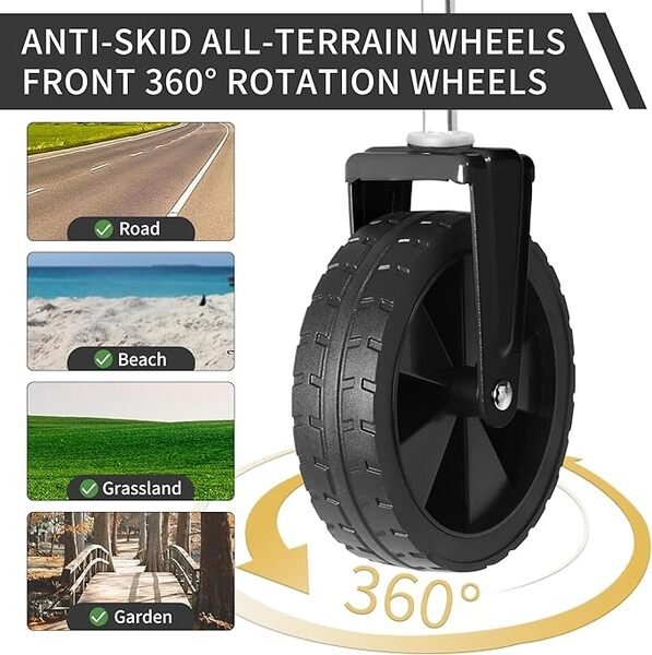 - Front 360 degree rotation wheels, push-and-pull steering more smooth and cope with more terrain easily